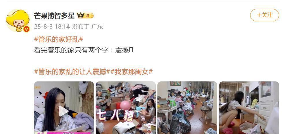 聚光灯下的明星总被贴上 “精致” 标签,但《我家那闺女 2025》最新一期里,女演员管乐的家却以颠覆性的 “乱” 破圈中财所,让观众重新审视明星的真实生活。